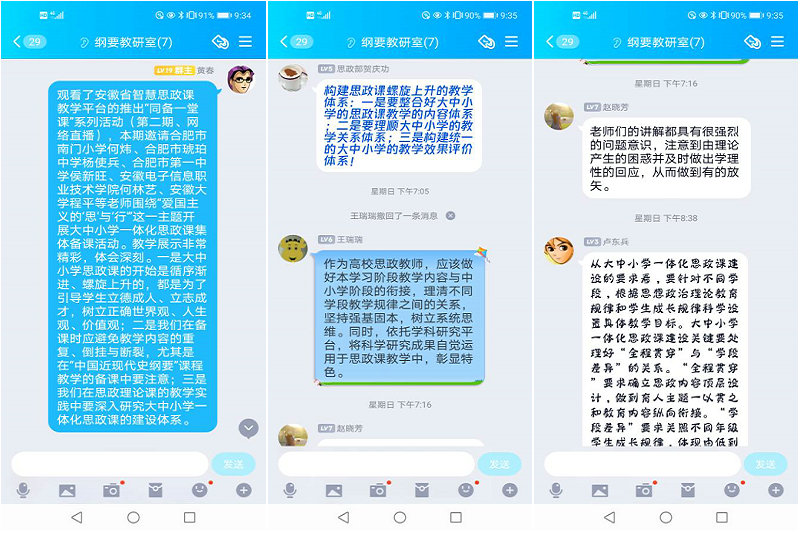 此次“同备一堂课”邀请了合肥市南门小学何炜、合肥市琥珀中学杨使兵、合肥市第一中学侯新旺、安徽电子信息职业技术学院何林艺、安徽大学程平老师等主讲,五位老师围绕《爱国主义的“思”与“行”》大中小学一体化集体备课会这一主题进行了精彩的授课展示。老师们普遍感觉受益匪浅。