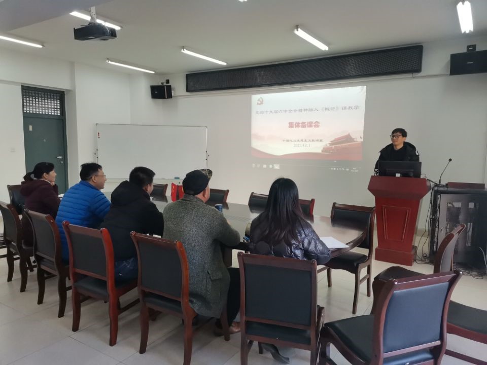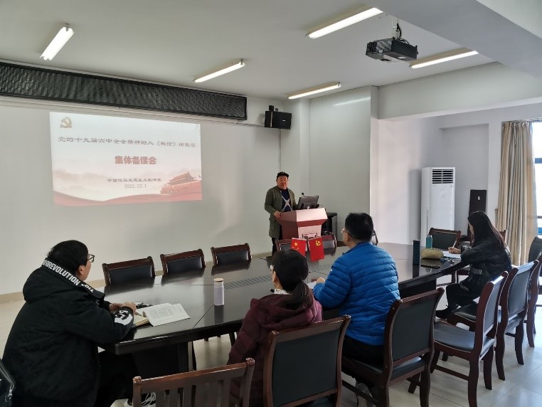 理论创新每前进一步、理论武装就要跟进一步。为深入学习宣传贯彻党的十九届六中全会精神,切实把思想和行动统一到全会精神上来,12月1日,中国化马克思主义教研室组织课程教师,开展党的十九届六中全会精神融入《毛泽东思想和中国特色社会主义理论体系概论》(以下简称“概论”)课教学集体备课会。