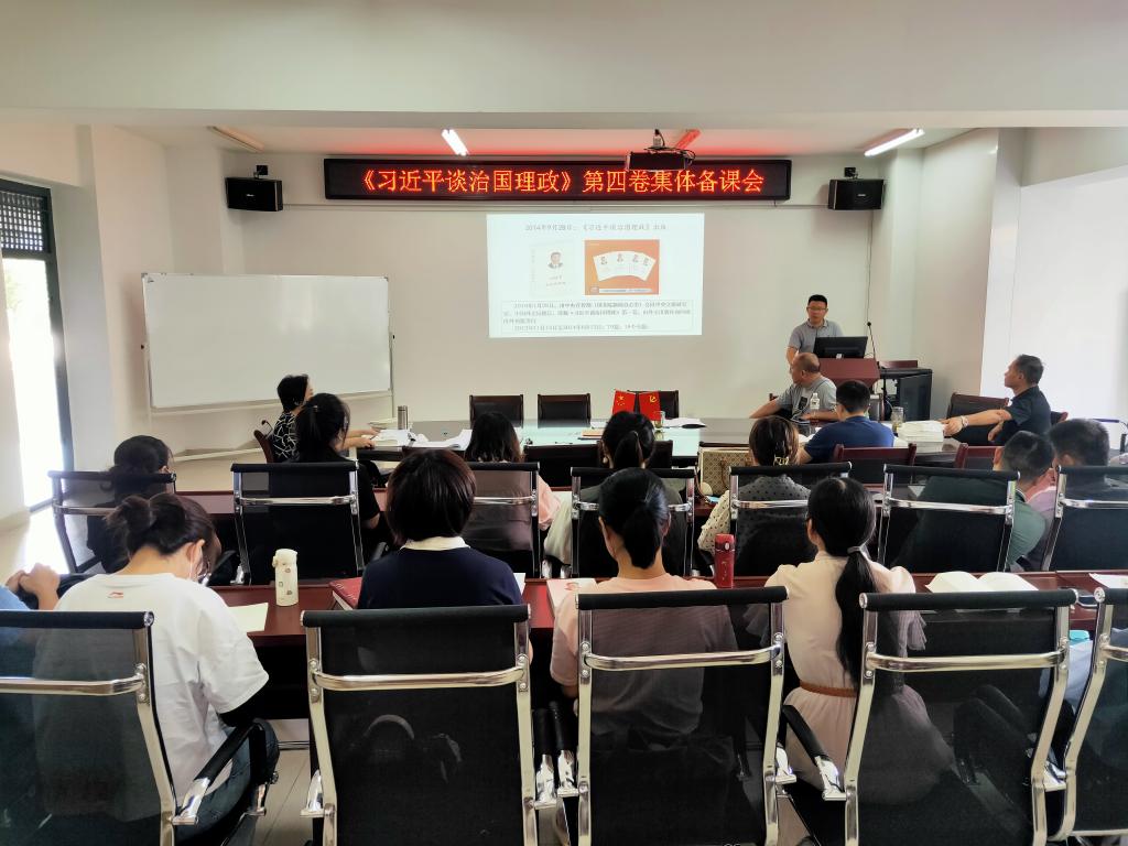 在8月26日组织全体教师集体学习“认真学习《习近平谈治国理政》第四卷是重大政治任务”、“学习《习近平谈治国理政》第四卷要抓住这个关键问题”等内容的基础上,结合《习近平谈治国理政》第四卷原著原文学习,于9月8日下午召开学习贯彻《习近平谈治国理政》第四卷集体备课会,全体思政课教师参加集体备课会。