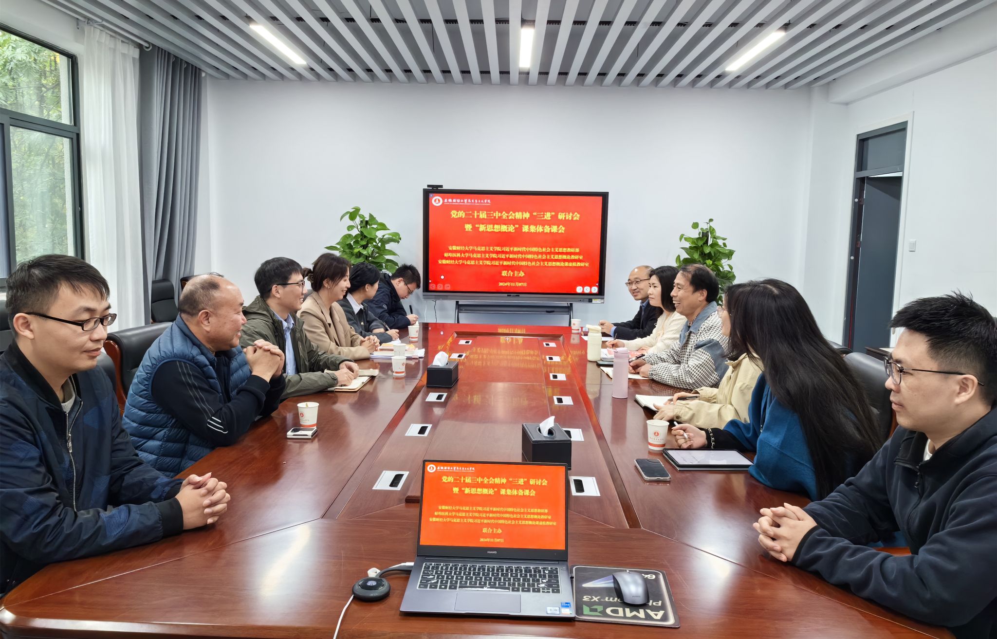 “新思想概论”教研室与安财马院“新思想”教研部全体教师参加会议。