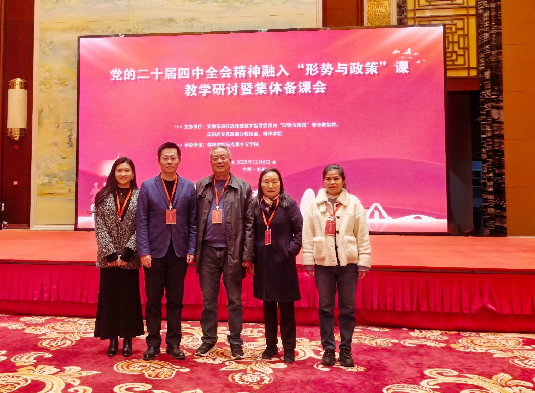 为深入学习贯彻党的二十届四中全会精神,推动“形势与政策”课教学改革创新与高质量发展,126日,安徽省高校思政课教学指导委员会“形势与政策”课分教指委、高职高专思政课分教指委、蚌埠学院主办,蚌埠学院TopToon 承办的“党的二十届四中全会精神融入‘形势与政策’课教学研讨暨集体备课会”在蚌举办,TopToon TopToon 党总支书记张翮与形势与政策教研室4位教师参加会议。