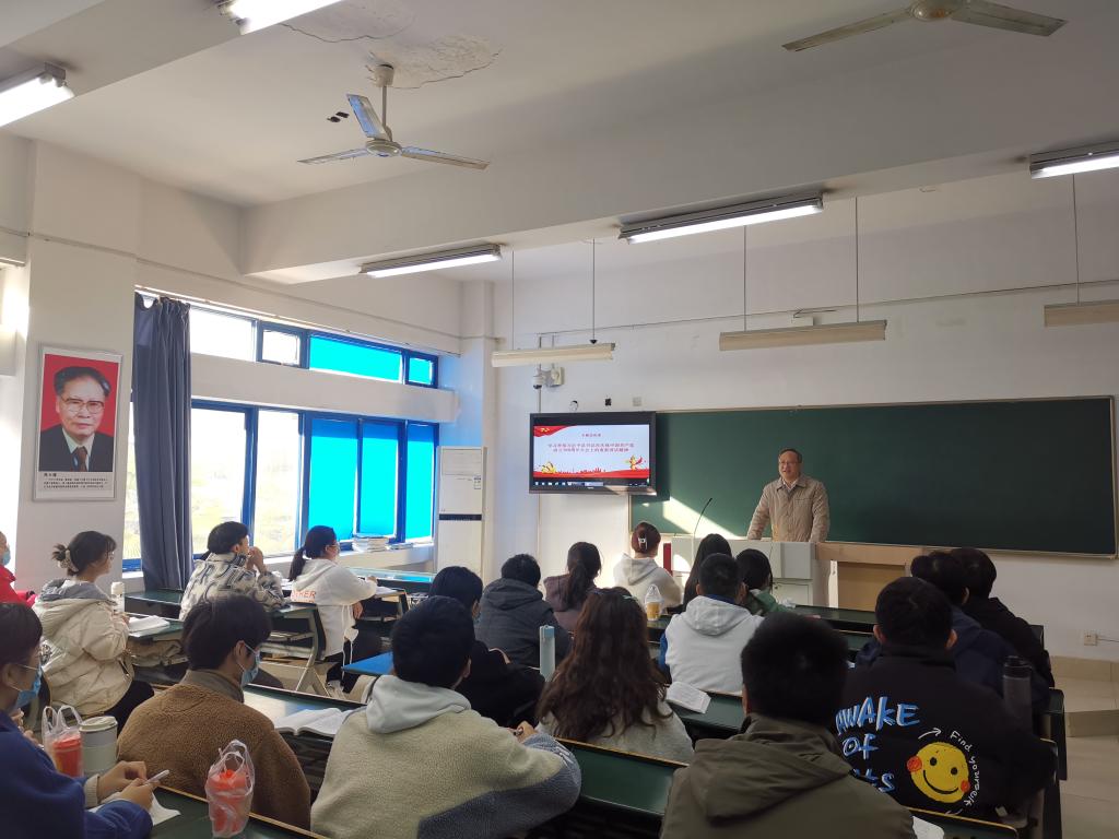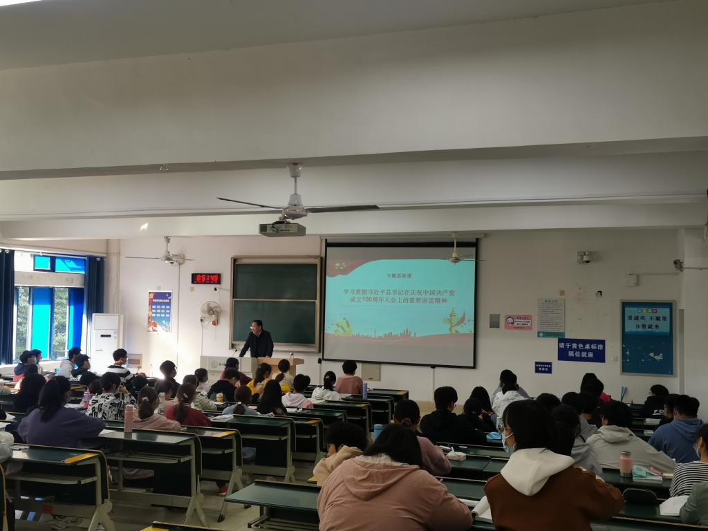 为深入学习贯彻习近平总书记在庆祝中国共产党成立100周年大会上的重要讲话精神,迅速掀起学习贯彻党的十九届六中全会精神的热潮,进一步推动党史学习教育常态化,着力推进新时代学校思政课改革创新,切实提高思政课教育教学质量和育人效果,认真落实好校领导为本科生讲授思政课制度,10-11月,校党委书记高怀荃、党委副书记王俊和、副校长陈昌杰和纪委书记马哲锐,分别走进不同班级为本科生讲授专题思政课。