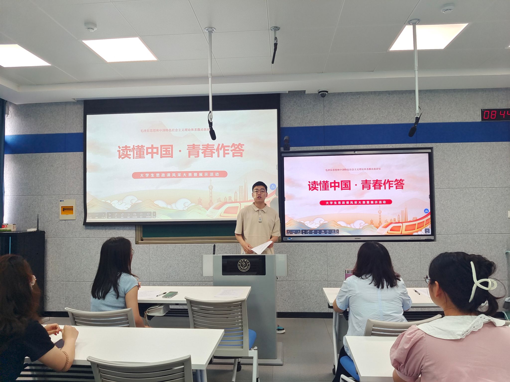 毛泽东思想和中国特色社会主义理论体系概论教研室(简称“毛中特概论”教研室)“读懂中国·青春作答”思政课风采大赛暨展示活动在理论楼智慧教室圆满落幕。八组学生团队以青春之声,深入阐释党的创新理论精髓,展现新时代青年理论素养与责任担当,现场掌声如潮,气氛既严肃热烈又充满教育启迪。