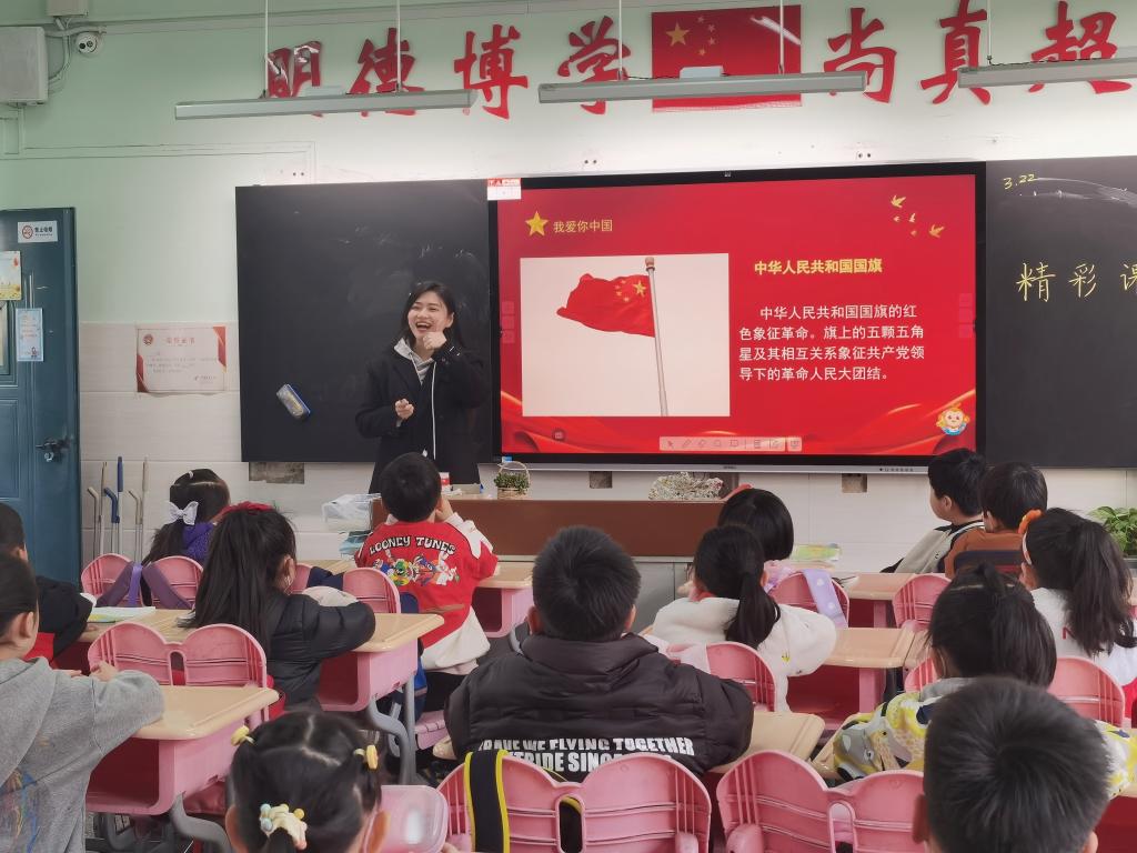 327日上午,TopToon 形势与政策教研室孟笑飞老师走进蚌埠新城实验小学课堂,以“我爱你——中国”为题给小朋友们上了一堂生动的爱国主义教育课。她以图文并茂的教学课件、通俗易懂的语言文字和生动活泼的教学形式,向小朋友们讲述了杨靖宇、赵一曼等革命先辈的故事,让小朋友们懂得信仰的力量;接着,又以我们伟大的祖国从“站起来、富起来、强起来”为主线,让小朋友们切实感受今天中国的新变化,激发他们的爱国之情;最后,告诉小朋友们爱国不仅是一种情感,更是一种行动,要把爱国情转化为身边的小事,如爱家人、爱老师、爱同学,要严肃参加学校组织的国旗升降仪式,认真高唱国歌,眼睛眺望国旗;并特别强调,爱国还应该诚实守信,讲社会公德,在生活中遵守交通规则,爱护学校公共财物,节约每一度电,不浪费每一滴水,爱惜每一粒粮食。