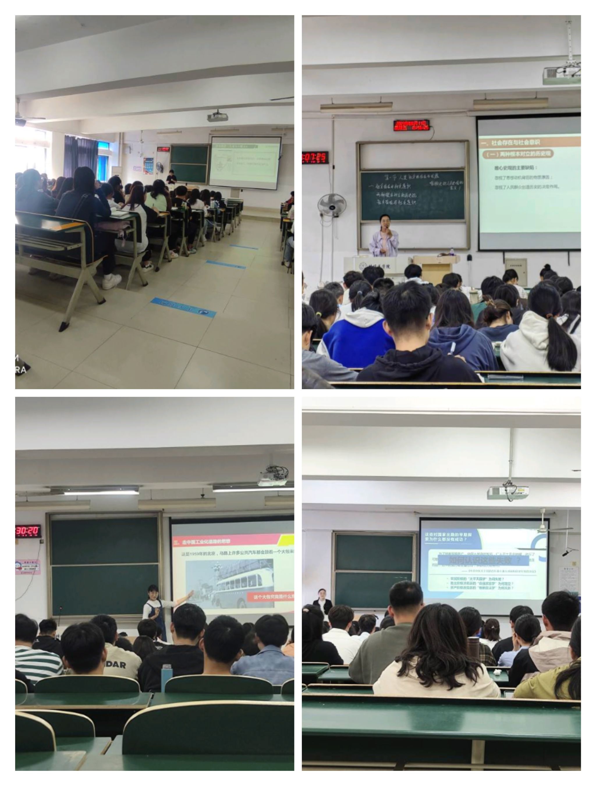 率先开展“示范公开课”的何慧、张翠、洪睿、卜婷四位老师,分别围绕《在实现中国梦的实践中放飞青春梦想》、《人类社会的存在与发展》、《太平天国运动》、《社会主义建设道路初步探索的理论成果》等教学内容,通过精心准备、深耕教材、巧妙设计,均作了精彩的思政课教育教学公开示范。每次课程示范环节结束后,参加听课教师与授课教师,围绕教学理念、教学设计、教学方式和教学语言等进行交流研讨,大家表示,他们在教学实践中得到了锤炼,在相互学习交流中得到了提升。