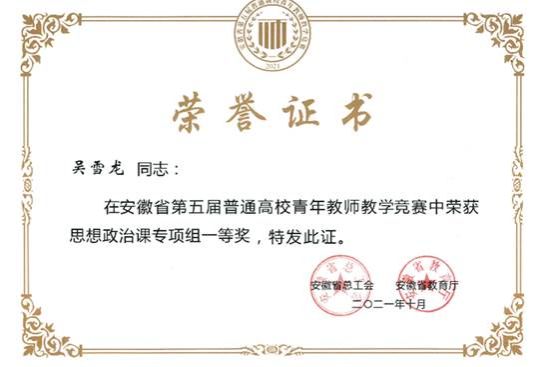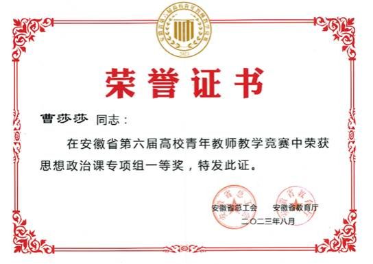 紧扣上好思政课关键在教师,着力突出教师政治建设,强化思想建设,抓好学习教育。严格落实意识形态工作责任制,扎实开展集体政治理论学习,认真组织新版思政课教材使用培训;借助教育部“周末理论大讲堂”和省智慧思政平台及各类线上线下学习教育培训等开展多层次、多种类学习讨论、学术交流、读书沙龙等活动,着力夯实思想教育和价值引领,全面强化教师队伍落实育人导向的思想自觉和行动自觉。鼓励支持教师为学校各级党组织和进政府机关、企事业单位和基层社区开展宣讲和做课程思政建设专题报告。1名教师获安徽省五一劳动奖章、1名教师获省级教学名师称号,2名教师入选安徽省委讲师团青年宣讲名师4名教师受聘蚌埠市委讲师团“理论宣讲专家库专家”。