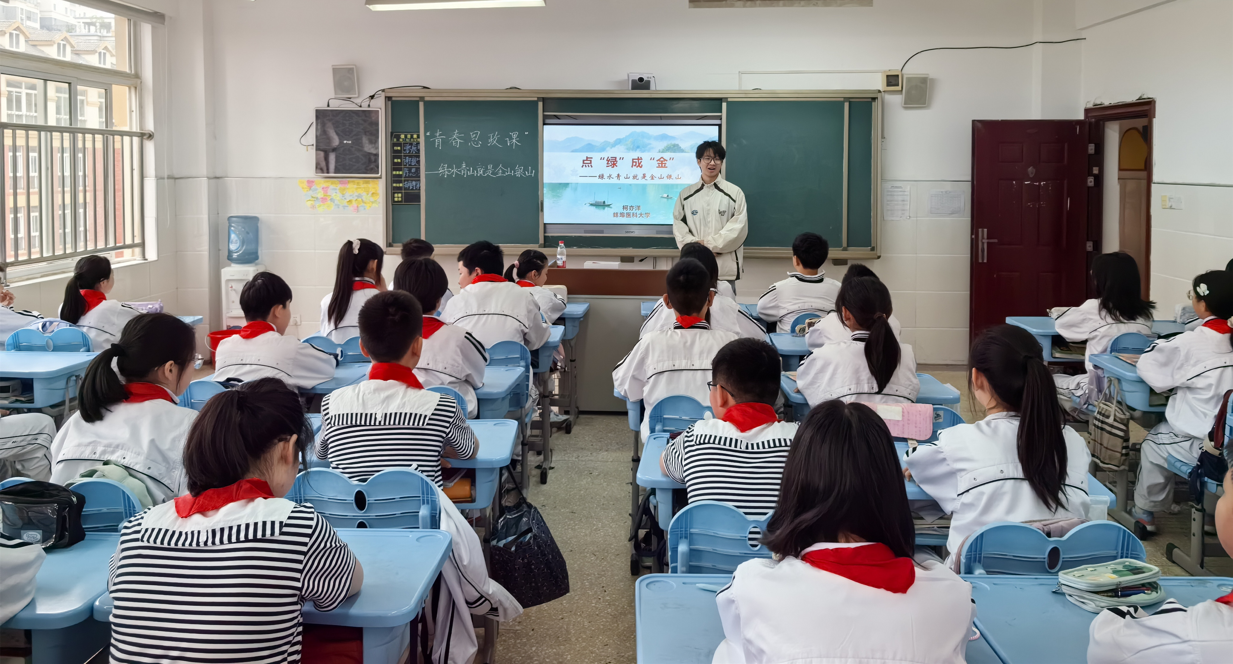柯亦洋以《点"绿"成"金"——绿水青山就是金山银山》为题,结合生动的案例、详实的数据和通俗易懂的语言,向小学生们阐述了"绿水青山就是金山银山"的重要理念。他从身边的“靓淮河”讲起,通过理念溯源、辩证关系和践行路径探讨,让同学们深刻认识到保护生态环境的重要性。