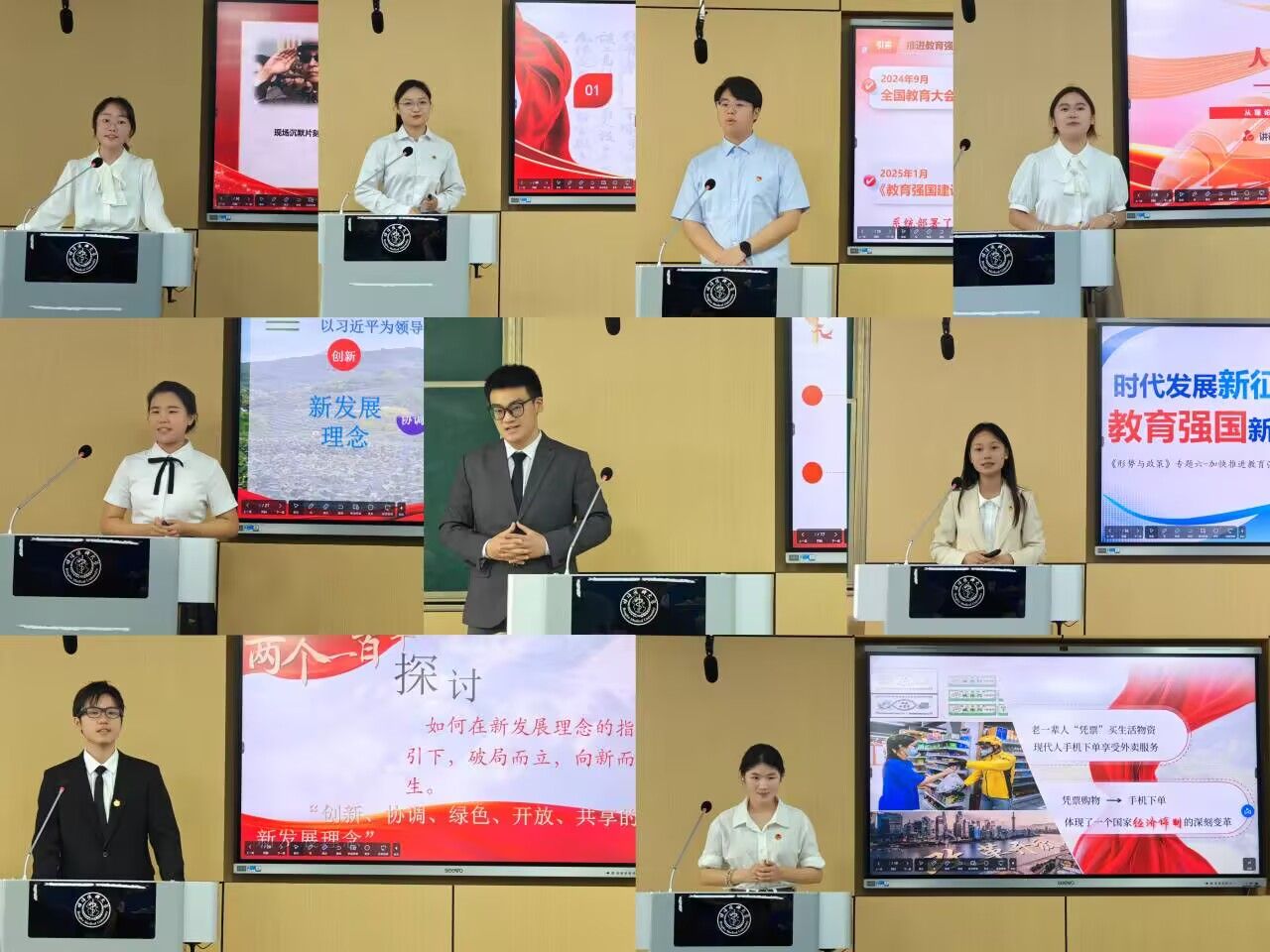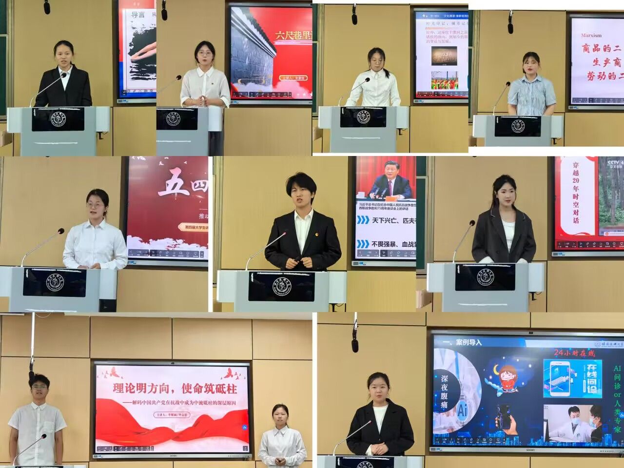 决赛现场,24名同学走上思政课讲台,围绕“启新程担使命铸未来”主题,阐述了他们对马克思主义理论和中国化时代化马克思主义理论的深刻理解,向同学们讲述社会进步、国家发展的伟大成就,讲述改革开放中涌现的英雄人物和感人故事。他们创新讲课方式,结合自身优势和专业特长,声情并茂,讲故事、说案例、谈感受、大胆创新,或侃侃而谈、或娓娓道来、或冷静沉着、或激情澎湃,从不同角度阐释理论,为广大师生献上了一场别开生面的思政精彩小课堂。