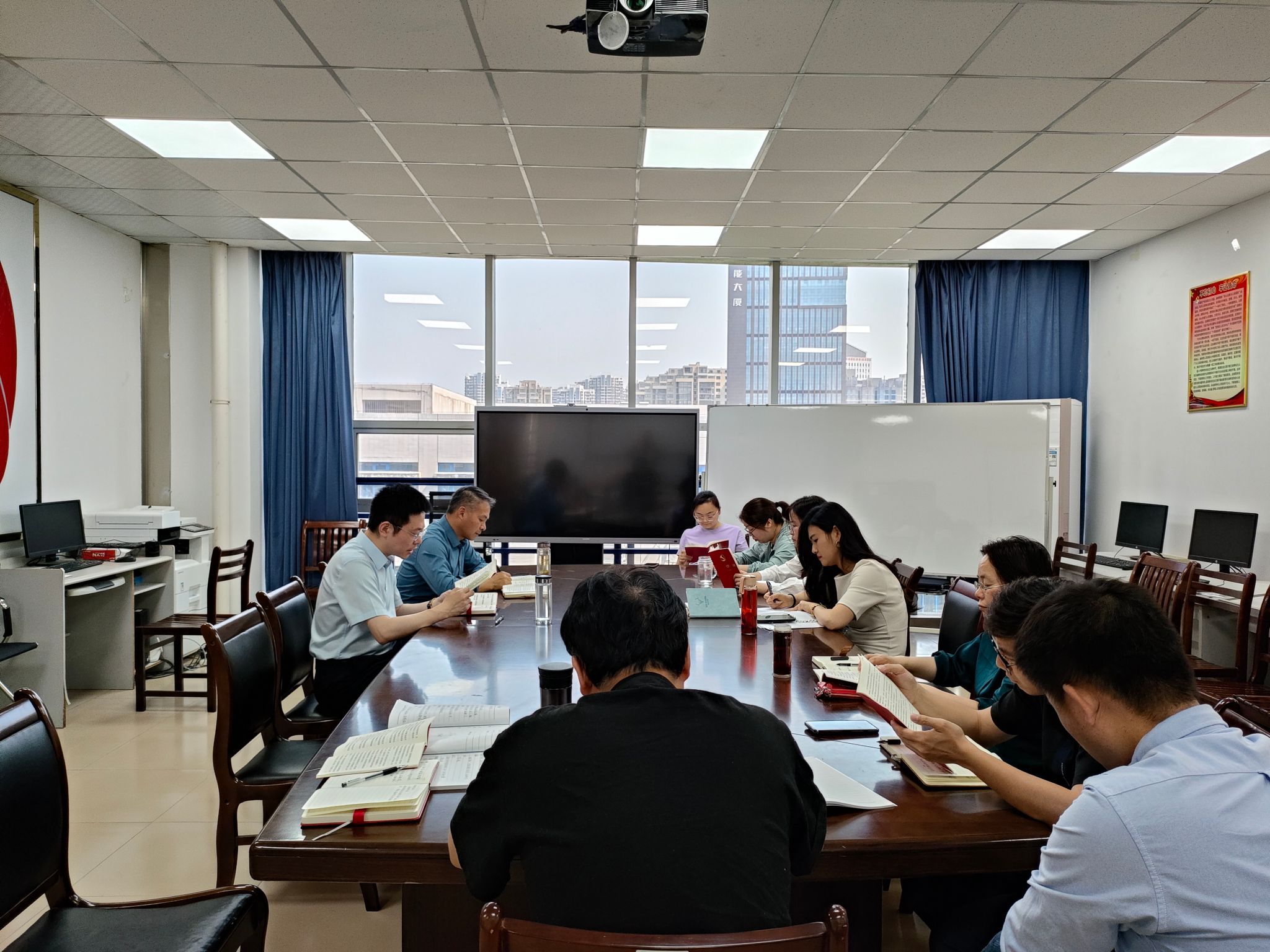 党总支开展党纪学习教育读书班第二次学习交流,学院党总支书记张翮主持会议,学院党总支委员、支部书记、教研室副主任参会。