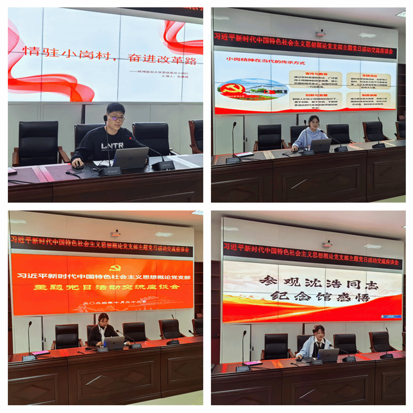 为期一天的主题党日活动让每一位同学都受益匪浅,在交流座谈环节,不同学段的学生们畅所欲言,共同表达自己的所感所悟。23级康复治疗学思政委员段雅希和24级信管思政委员翟丹璐认为,作为医学生,要以敢为人先的勇气和改革创新精神,在医疗卫生领域不断学习和探索,为中国式现代化贡献自己的智慧和力量。23级精神医学思政委员包景琦和22级护理专业贾静雯则结合之前暑期社会实践活动中对小岗村开展的调研情况,深刻解读了小岗村乡村振兴中的成功密码,他们呼吁新时代的青年学生要传承小岗精神和沈浩精神,汲取奋进力量,为强国建设和民族复兴伟业接续奋斗,再创辉煌。