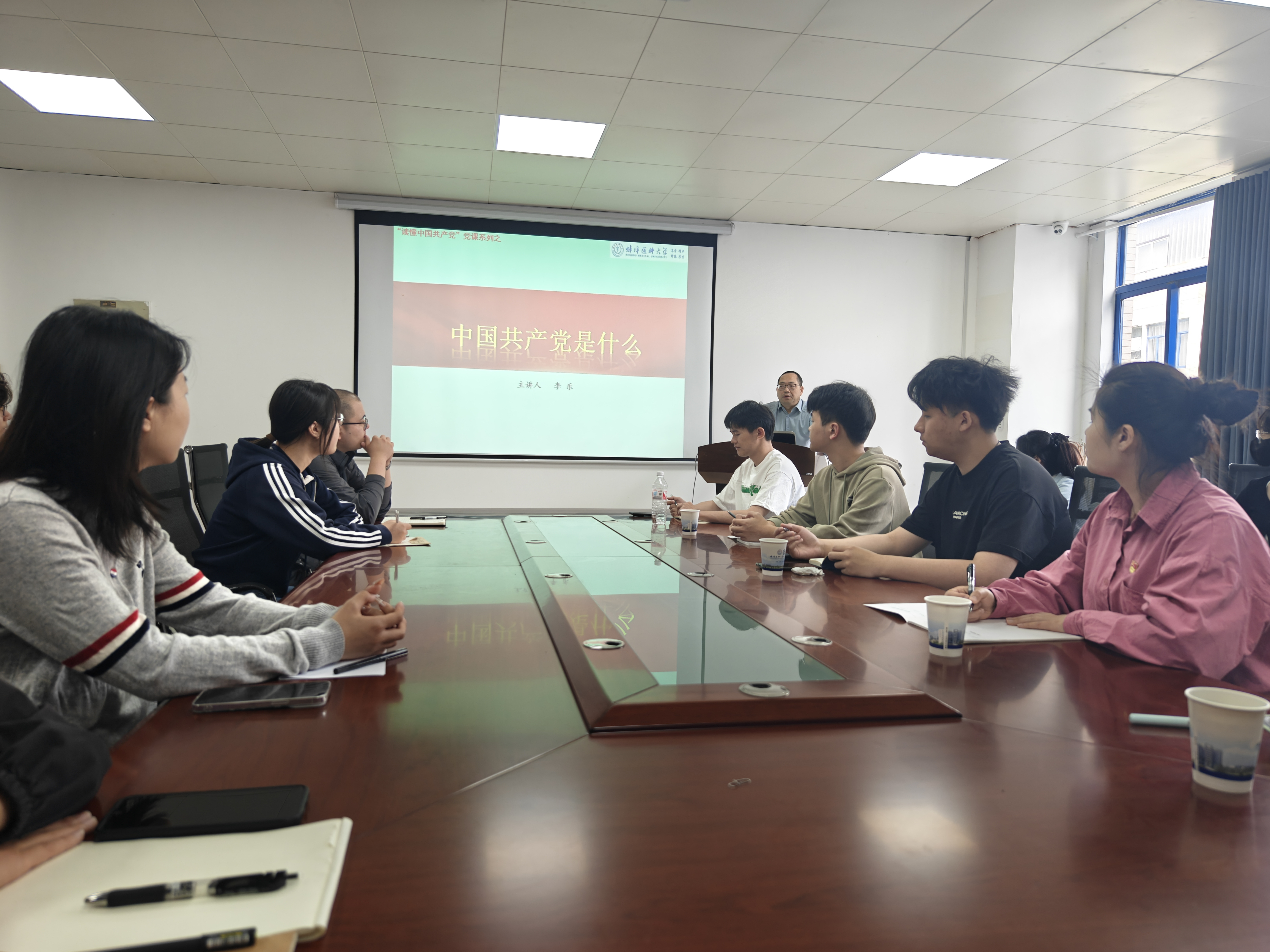 “纲要”党支部李乐老师作《读懂中国共产党》主题宣讲,以百年党史为镜,为全体师生党员解码从严治党的精神内核。李乐以繁体“黨”字的构成切入,指出在《说文解字》中,“尚”取意“崇高、尊崇”,“黑”则象征黎明前的至暗时刻,这个看似矛盾的组合,恰恰暗合了中国共产党团结带领中国人民从黑暗走向光明的奋斗逻辑——以崇高理想引领人民冲破黑暗,在自我净化中永葆光明本色。1951年刘青山、张子善贪污案公审现场,7000份判决书传单被群众争相传阅,彰显“打铁必须自身硬”的政治清醒。这种“尚”与“黑”的辩证统一,在作风建设中具象为“三严三实”的行动哲学:既严以修身、用权、律己,又谋事、创业、做人要实,如同“黨”字中黑底白线的架构,在约束中创造自由,在规矩中孕育生机。卫生管理学院党总支副书记贾先果表示:“中国共产党始终以崇高信仰冲破黑暗,又以刮骨疗毒的勇气守护光明。这种文化基因与政治品格的深度融合,正通过数字化手段焕发新生,为培养新时代“德术双馨”的医疗卫生人才注入强劲精神动力。”