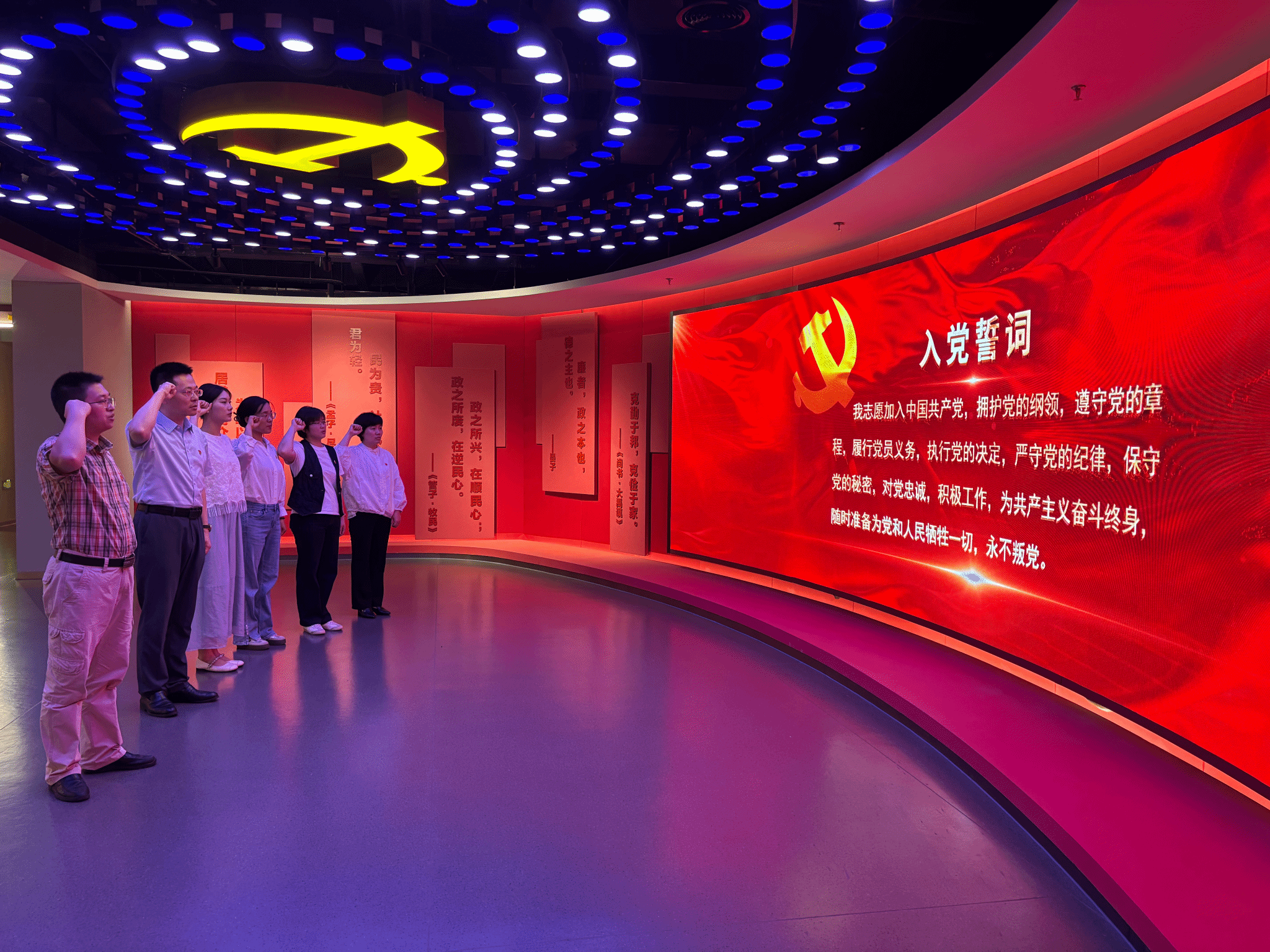 在鲜红的党旗下,党支部书记章波带领全体党员同志重温了入党誓词。党员们高举右拳,在铿锵有力的宣誓声中再次重温了入党初心使命,时刻提醒自己要永葆清正廉洁的政治本色。