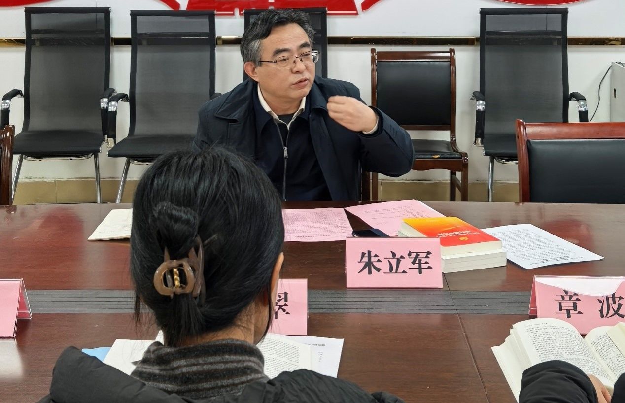 与会人员围绕“学习宣传贯彻党的二十届四中全会精神,扎实推动党的创新理论进教材、进课堂、进头脑”主题,视频学习了习近平总书记在中央经济工作会议上的重要讲话精神,集体学习了习近平总书记在中共中央政治局第二十三次集体学习时的重要讲话精神,逐字逐句学习了《习近平谈治国理政》第五卷和《党的二十届四中全会<建议>学习辅导百问》部分内容。支部两位党员结合自身学习感悟,展开主题发言。随后,与会人员围绕会议主题,结合学习内容和工作实际进行了交流发言。朱立军认真倾听,不时记录。